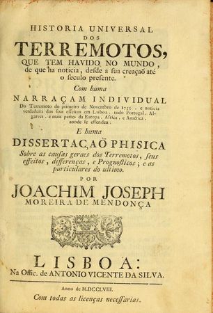 Esta obra notável, que integra o acervo documental do Gabinete de Estudos Olisiponenses, é considerada o primeiro catálogo sísmico em língua portuguesa. Nela, o autor reflete sobre a origem dos sismos e regista os principais abalos sentidos em Portugal, incluindo o devastador terramoto de 1 de novembro de 1755, do qual foi testemunha ocular.
