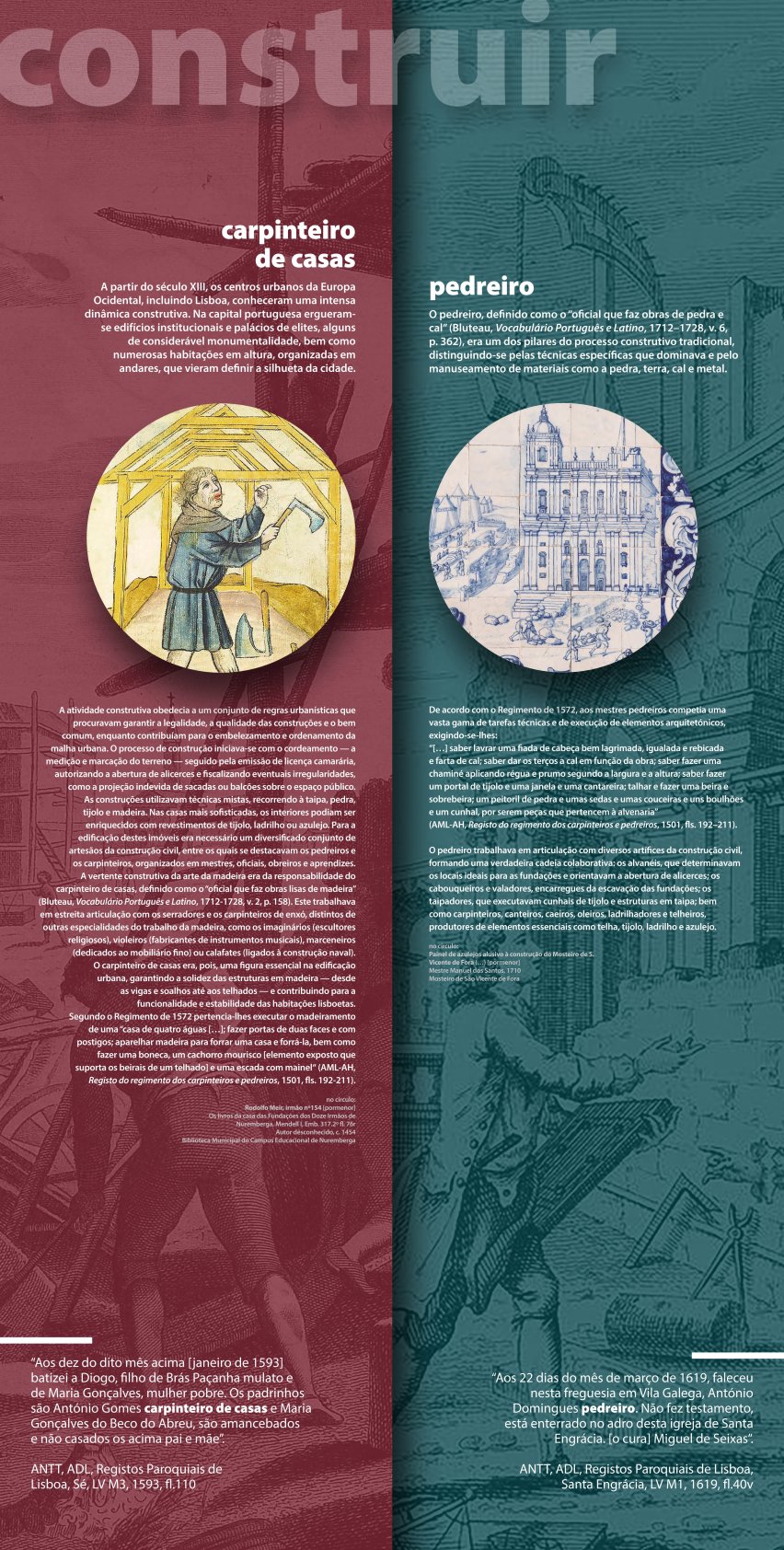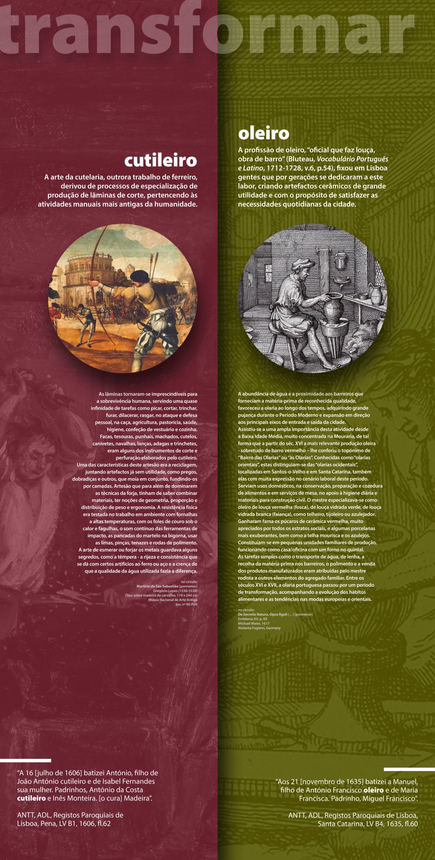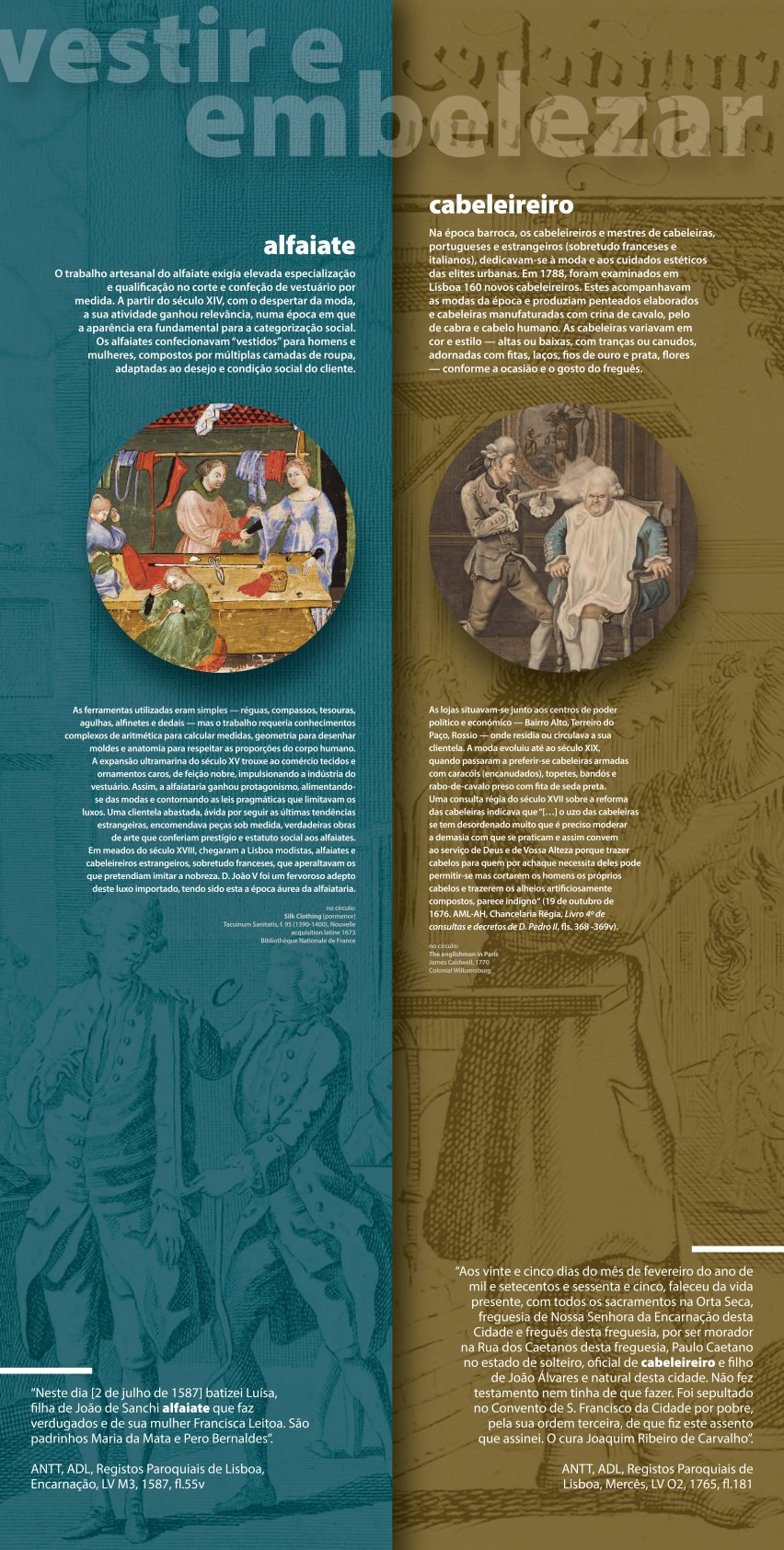 A exposição “Lisboa na Época Moderna: Quotidianos, Artes e Ofícios” integra-se num projeto de investigação dedicado à História da População de Lisboa, desenvolvido no núcleo de Demografia Histórica do Gabinete de Estudos Olisiponenses.