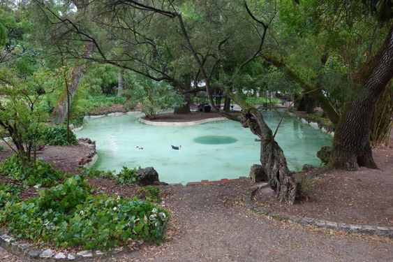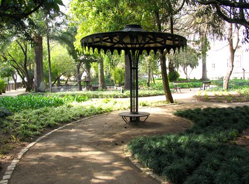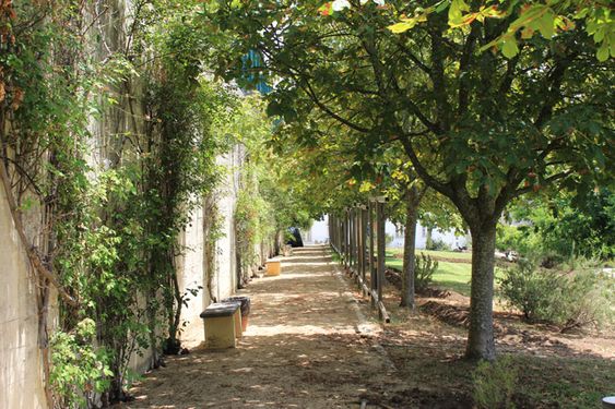 A pequena zona de clareira, utilizada como estacionamento, está enquadrada por uma pérgula de glicínias (Wisteria sinensis), de floração lilás, por um pequeno lago e por algumas árvores como os plátanos (Platanus hybrida), os jacarandás (Jacaranda mimosifolia) e a eritrina (Erythrina crista-galli), cujas florações lilás e vermelha, respetivamente, quebram a monotonia dos verdes.